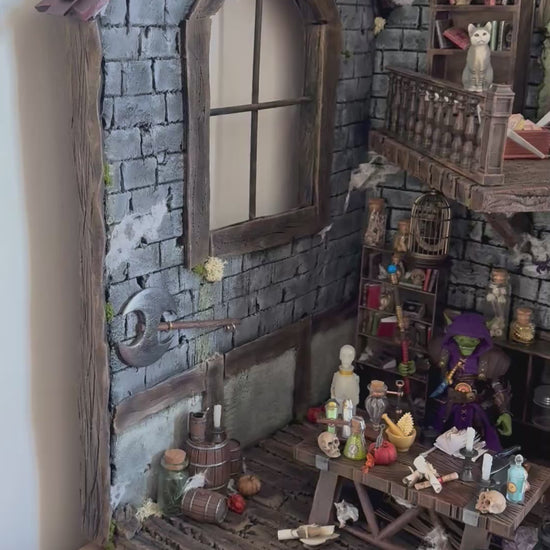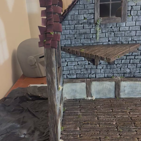 Bring your Mythic Legions displays to life with this handcrafted diorama piece, inspired by the charm of a weathered old cottage with a raised platform. Built to 1:12 scale, this detailed environment is perfect for figure photography, storytelling, or enhancing your display shelf with rich, immersive scenery.