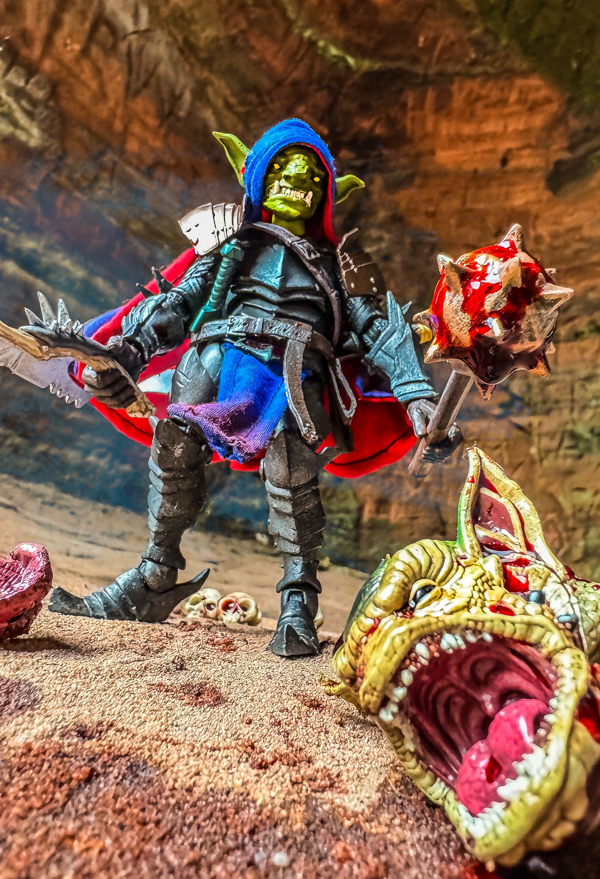 Bring your Mythic Legions goblins to life with this handcrafted short cape, made from soft poly-cotton fabric and wired for dynamic posing. Ideal for wind-blown looks, action shots, or custom displays.